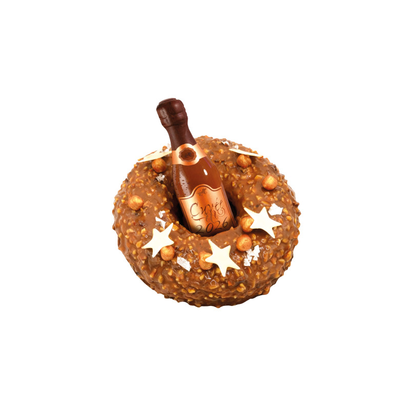 Mousseline praliné noisette du Piémont, pâte à tartiner noisette du Piémont aux morceaux, biscuit noisette torréfié, croustillant sablé-praliné noisette. RETRAIT EN BOUTIQUE UNIQUEMENT, À AUXERRE ET SENS, À COMPTER DU 31 DÉCEMBRE.
